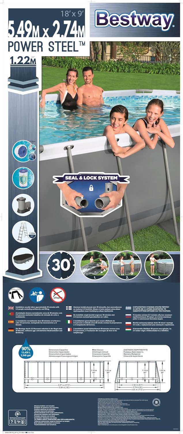 • Le colis contient : 1 piscine, 1 pompe de filtration, 1 échelle de sécurité, 1 couverture de piscine, 1 distributeur ChemConnect